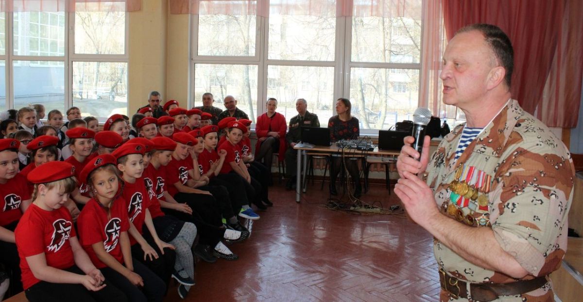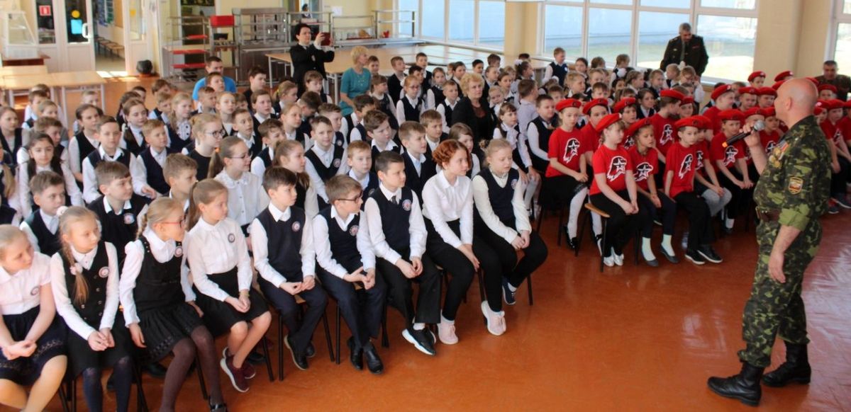 В ходе мероприятия на экране были показаны фрагменты фильмов о Великой Отечественной войне, войне в Афганистане. И рассказы, и песни школьники выслушали с большим вниманием, а авторскую песню «Русских не победить» молодые юнармейцы 2-а класса спели вместе с автором.