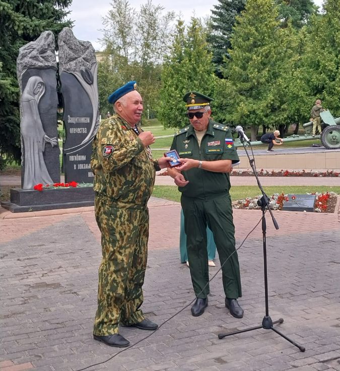 Виктор Михайлович от имени Председателя Совета Общероссийской общественной организации ветеранов ВС РФ генерала армии Виктора Федоровича Ермакова вручил медаль «Жене десантника» супруге майора-десантника Александра Бурова за активную работу по военно-патриотическому воспитанию молодёжи и помощь военнослужащим, выполняющим задачи в ходе СВО.