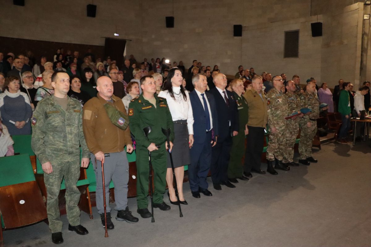 В концертном зале собрались ветераны, военнослужащие, участники СВО, жёны и матери, представители общественных организаций, жители и почётные гости города.