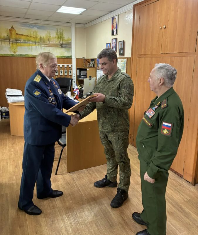 Полковник Рвачёв зачитал Поздравительный адрес командованию и личному составу соединения от Коломенского отделения ветеранов и вручил его исполняющему обязанности командира.