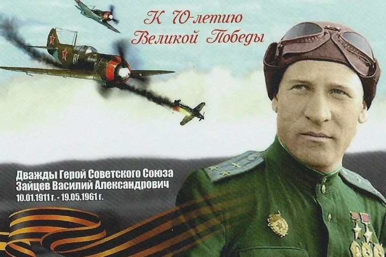 Василий Александрович - легендарный лётчик-ас времён Великой Отечественной войны, лично сбил 34 вражеских самолёта и 19 в групповом бою. 5 гвардейский истребительный авиационный полк, которым он командовал, был самым результативным за всю историю войны. Лётчиками полка было сбито 729 фашистских самолётов. Авиационный полк был и самым звёздным – 20 Героев Советского Союза и 2 –дважды Героя. При этом самого Василия Зайцева никто ни разу не сбил – ни немецкие асы, ни вражеские зенитчики. После войны он жил в Коломне и возглавлял Коломенский аэроклуб.